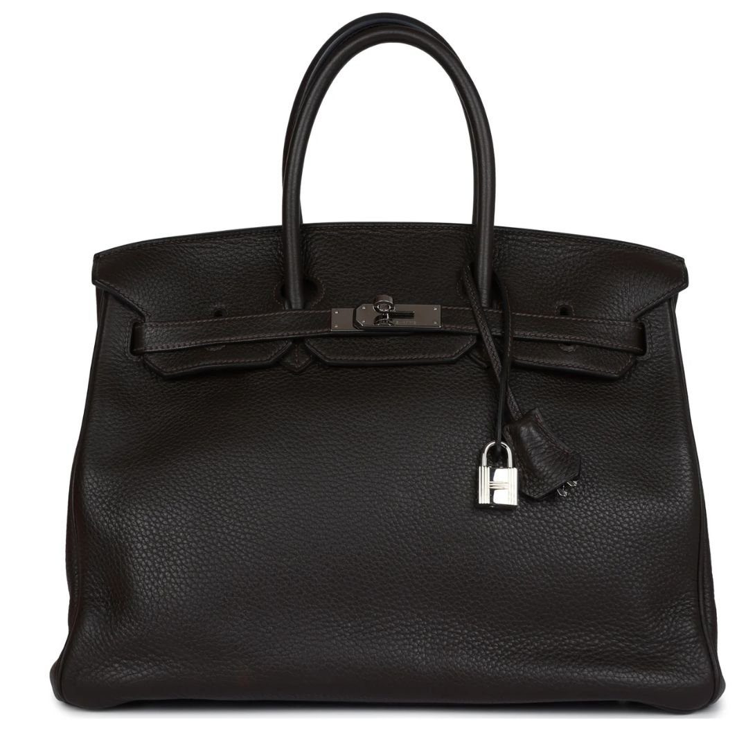 PRE-OWNED HERMÈS ANATE BIRKIN 35 CHOCOLAT EVERGRAIN GOLD HARDWARE $ 27,650