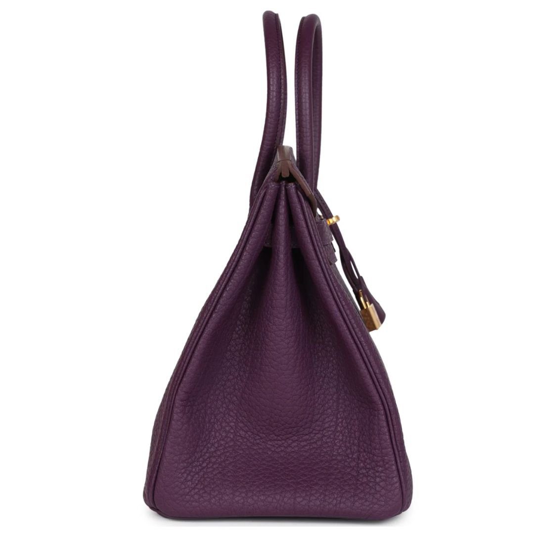 This Birkin is crafted from Cassis Fjord leather with gold hardware and features: