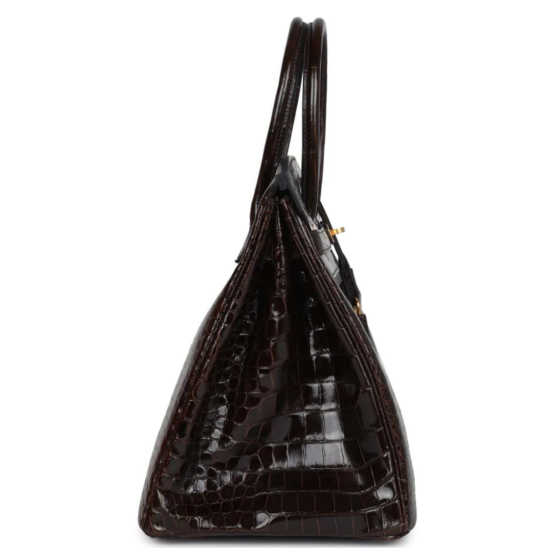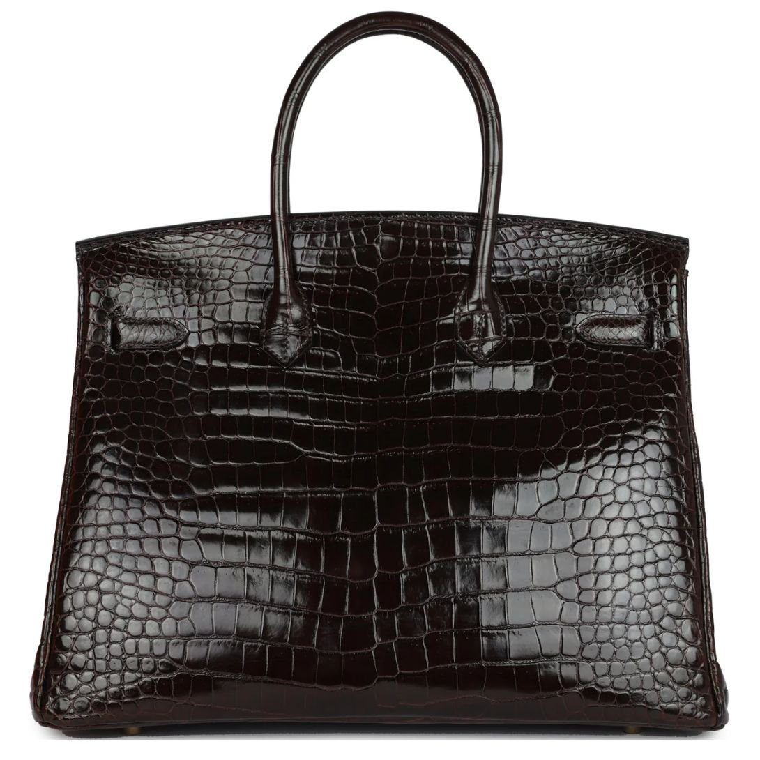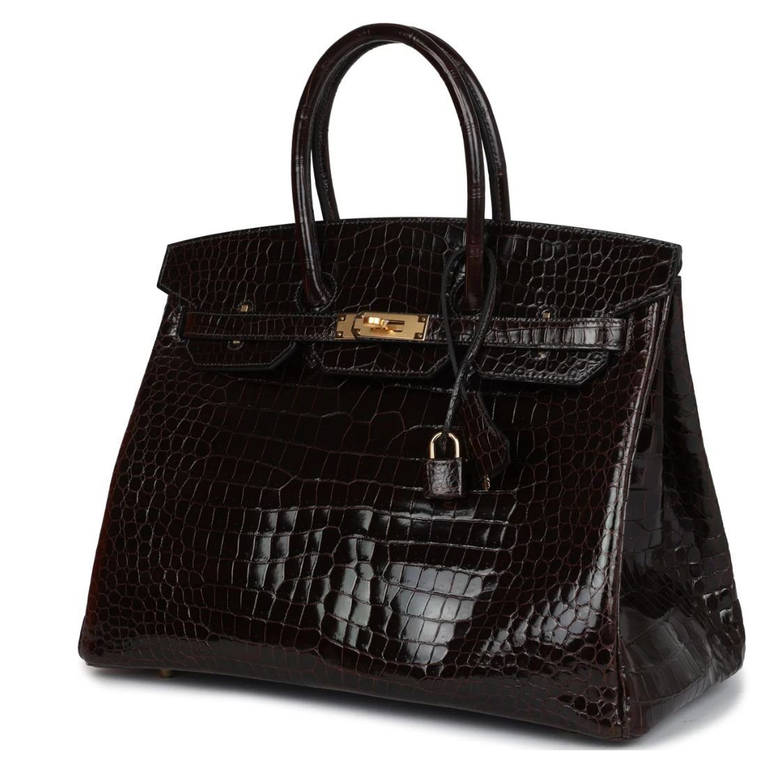 PRE-OWNED HERMÈS BIRKIN 35 COCAON SHINY POROSUS CROCODILE GOLD HARDWARE