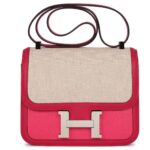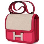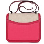 This Constance 24 features a stylish Rose Shocking & Ecru Toile H Berline canvas combined with Framboise swift leather and palladium hardware. It showcases tonal stitching, a metal “H” snap lock closure, and an adjustable shoulder strap.