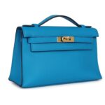 PRE-OWNED HERMÈS KELLY POCHETTE BLEU FRIDA SWIFT GOLD HARDWARE