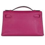 PRE-OWNED HERMÈS KELLY POCHETTE ROSE POURPRE SWIFT PALLADIUM HARDWARE