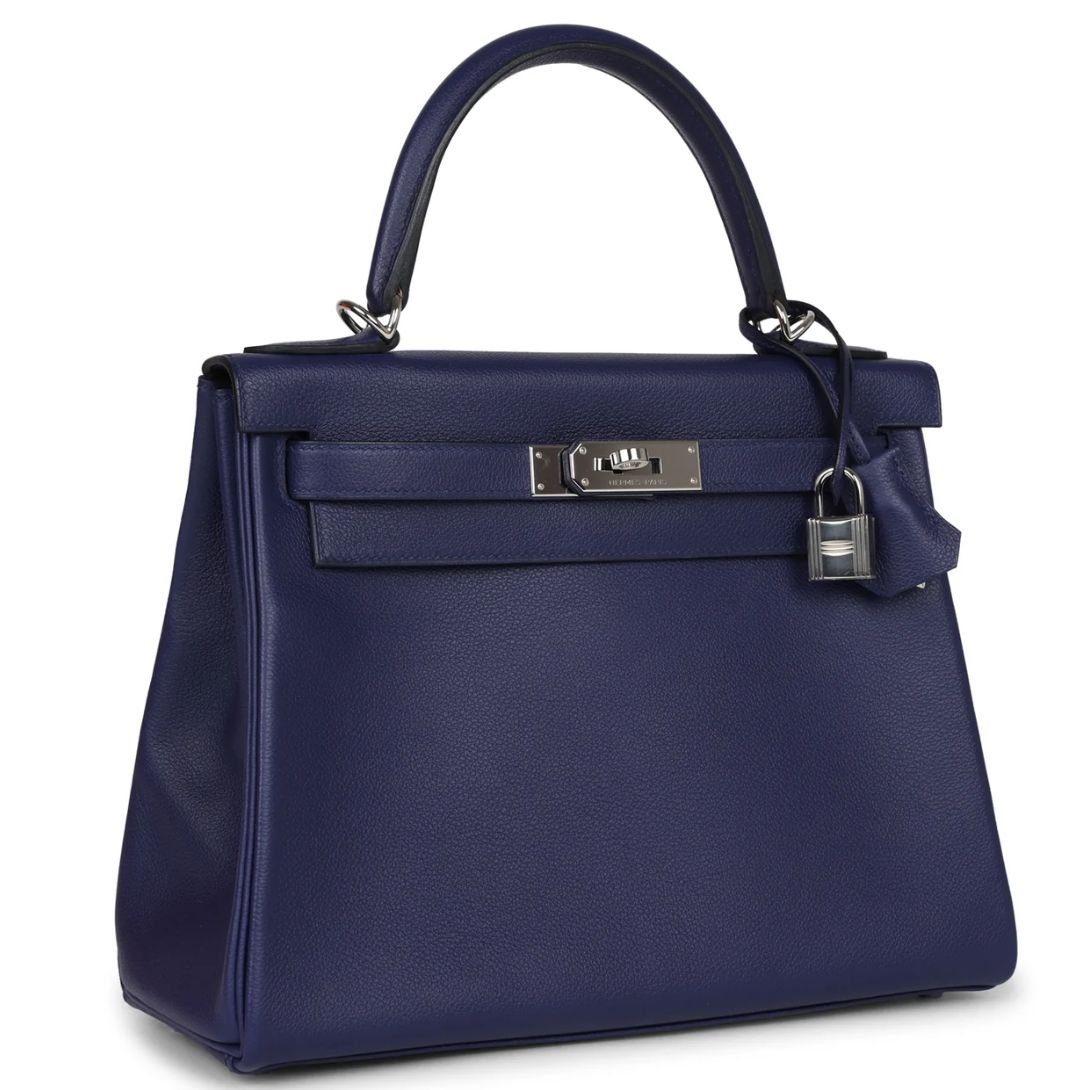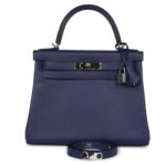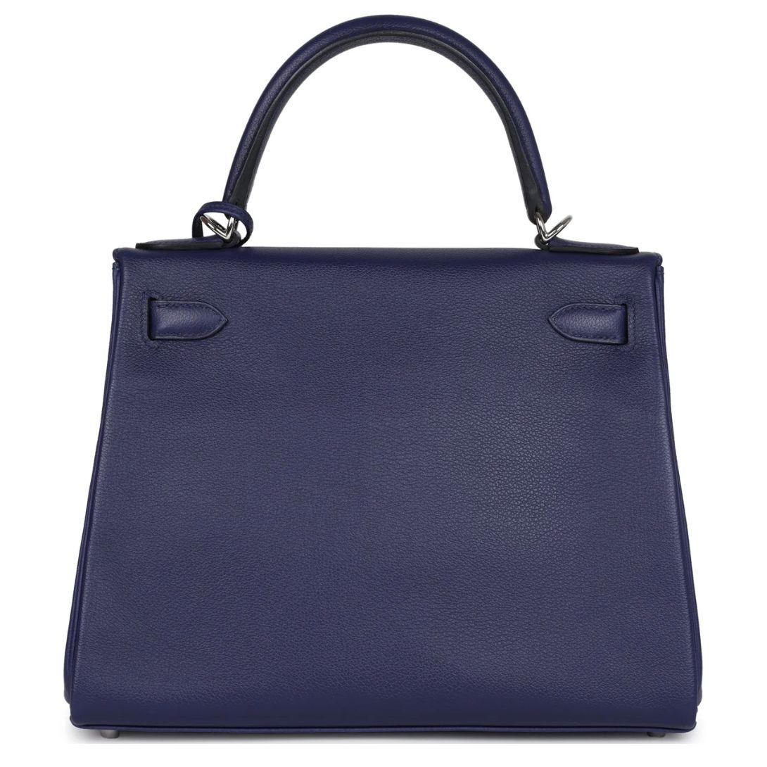 PRE-OWNED HERMÈS KELLY RETOURNE 28 BLEU ENCRE VERSO EVERCOLOR PALLADIUM HARDWARE