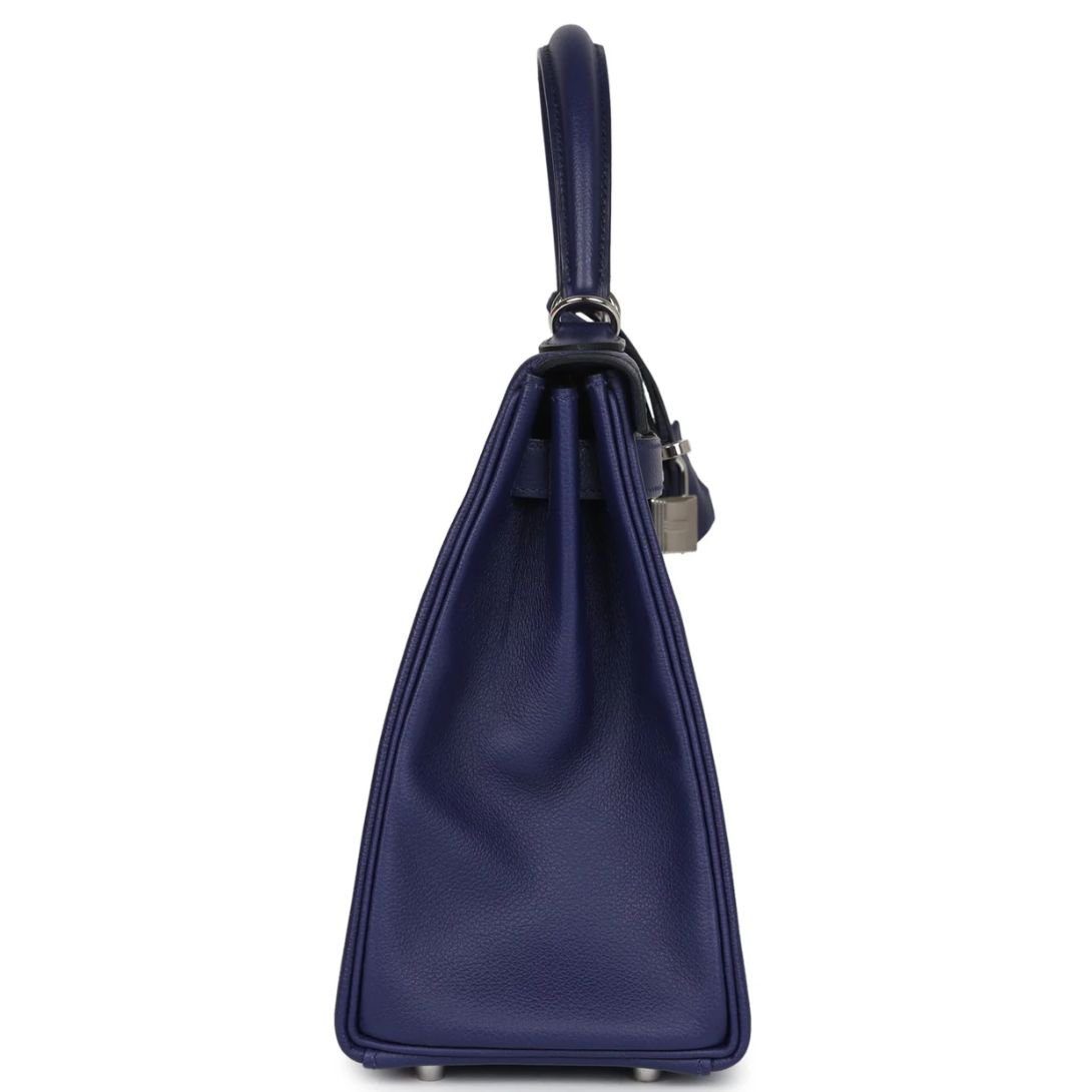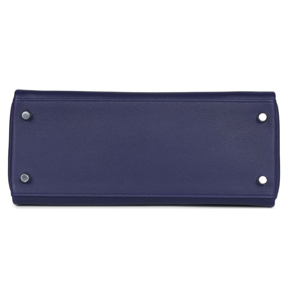 This Hermès Kelly Verso offers a refined and classic design in Bleu Encre leather with palladium hardware, and includes all original accessories in mint condition.