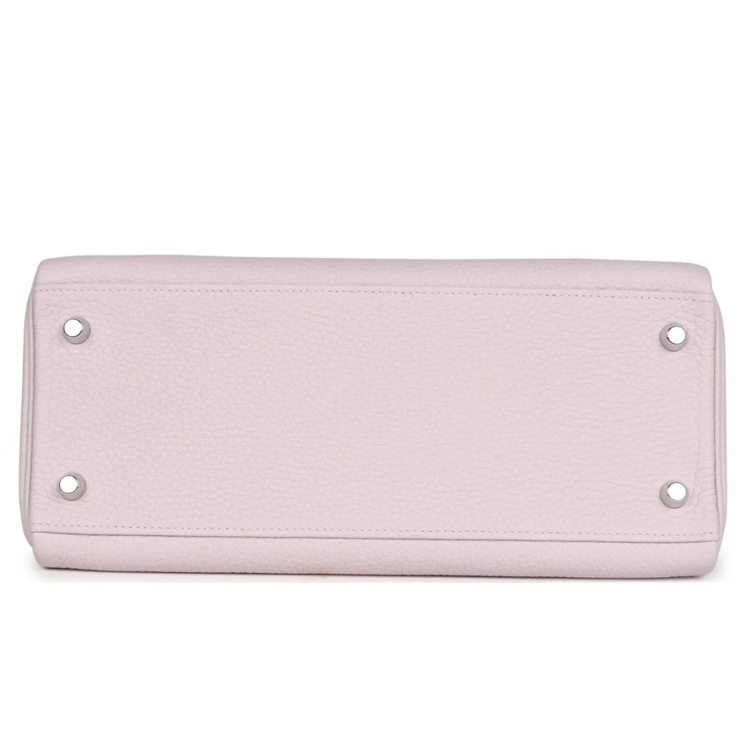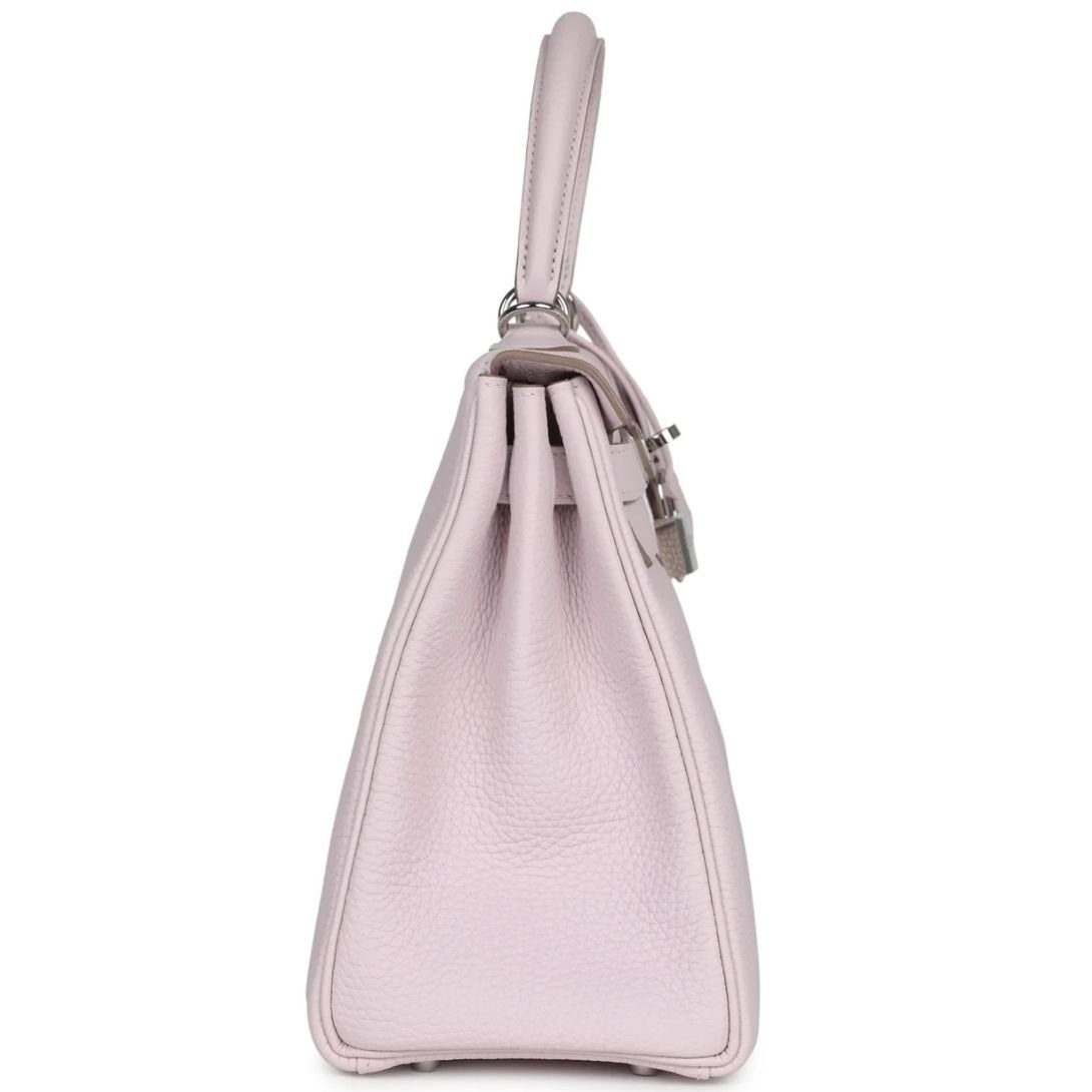 This Kelly in the Retourne style is a luxurious and versatile bag, crafted from Mauve Pale clemence leather with refined palladium hardware, showcasing both elegance and practicality.
