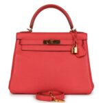 The Kelly Retourne in Rose Jaipur Clemence leather is an elegant choice, blending vibrant color with the luxurious craftsmanship Hermès is known for. Perfect for both everyday and special occasions.