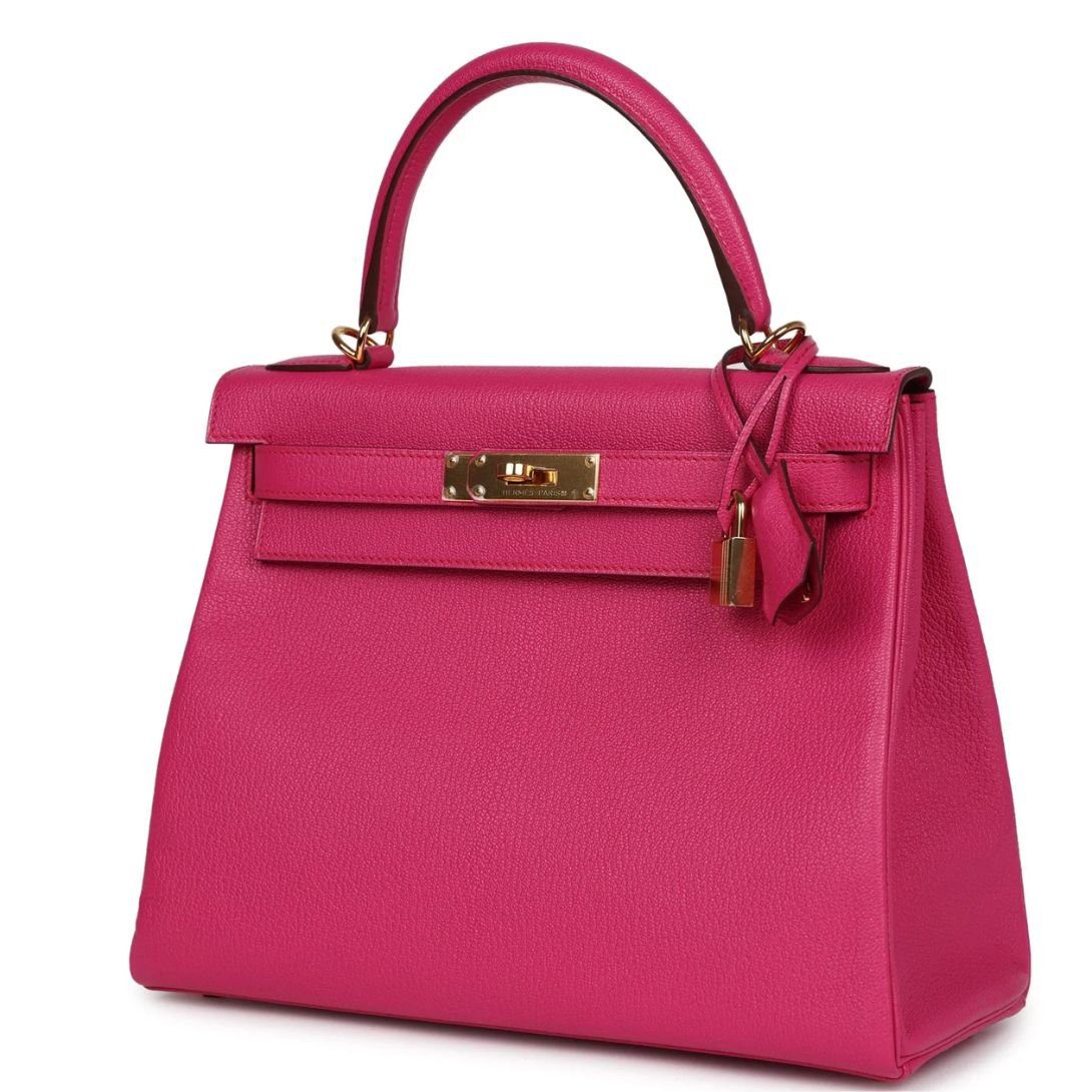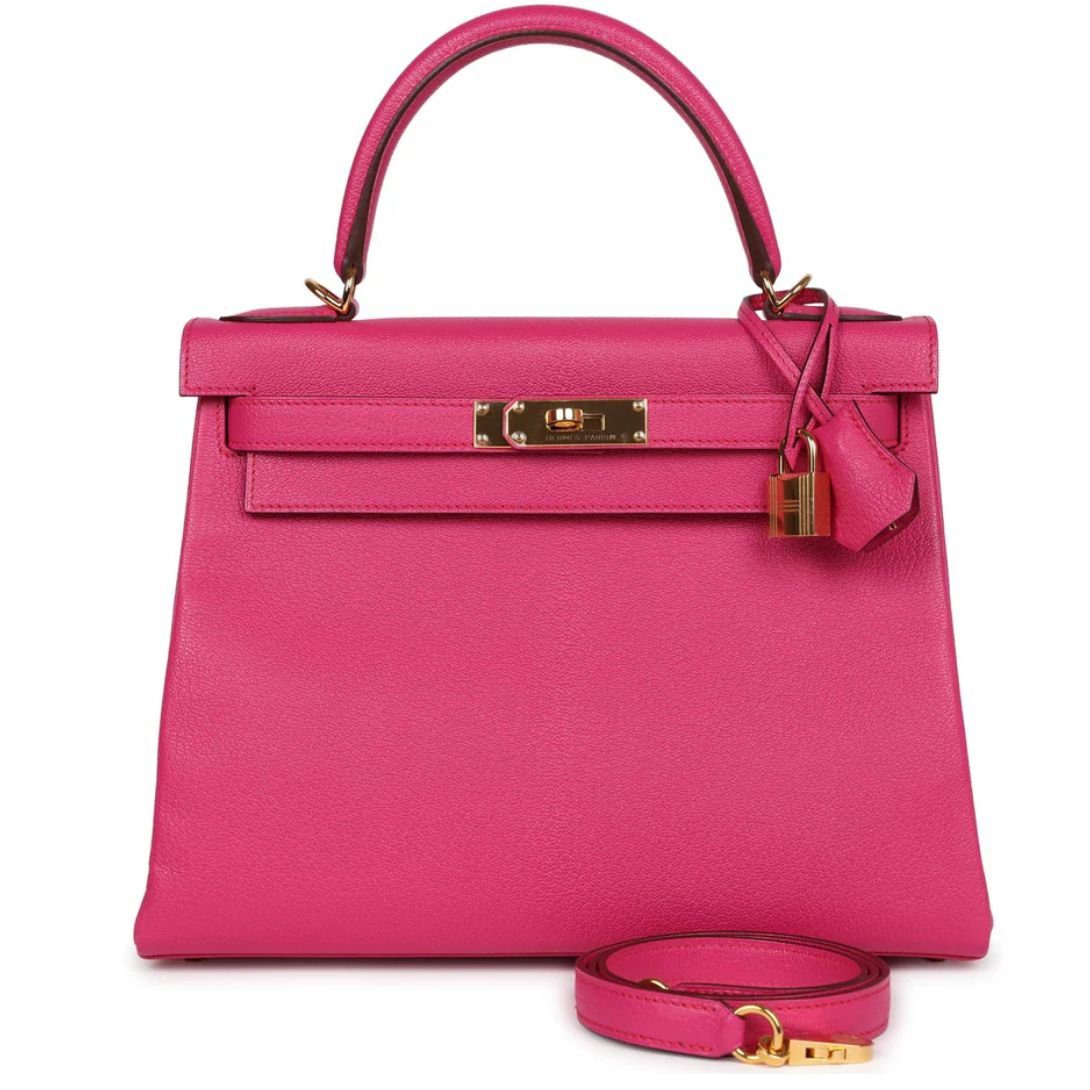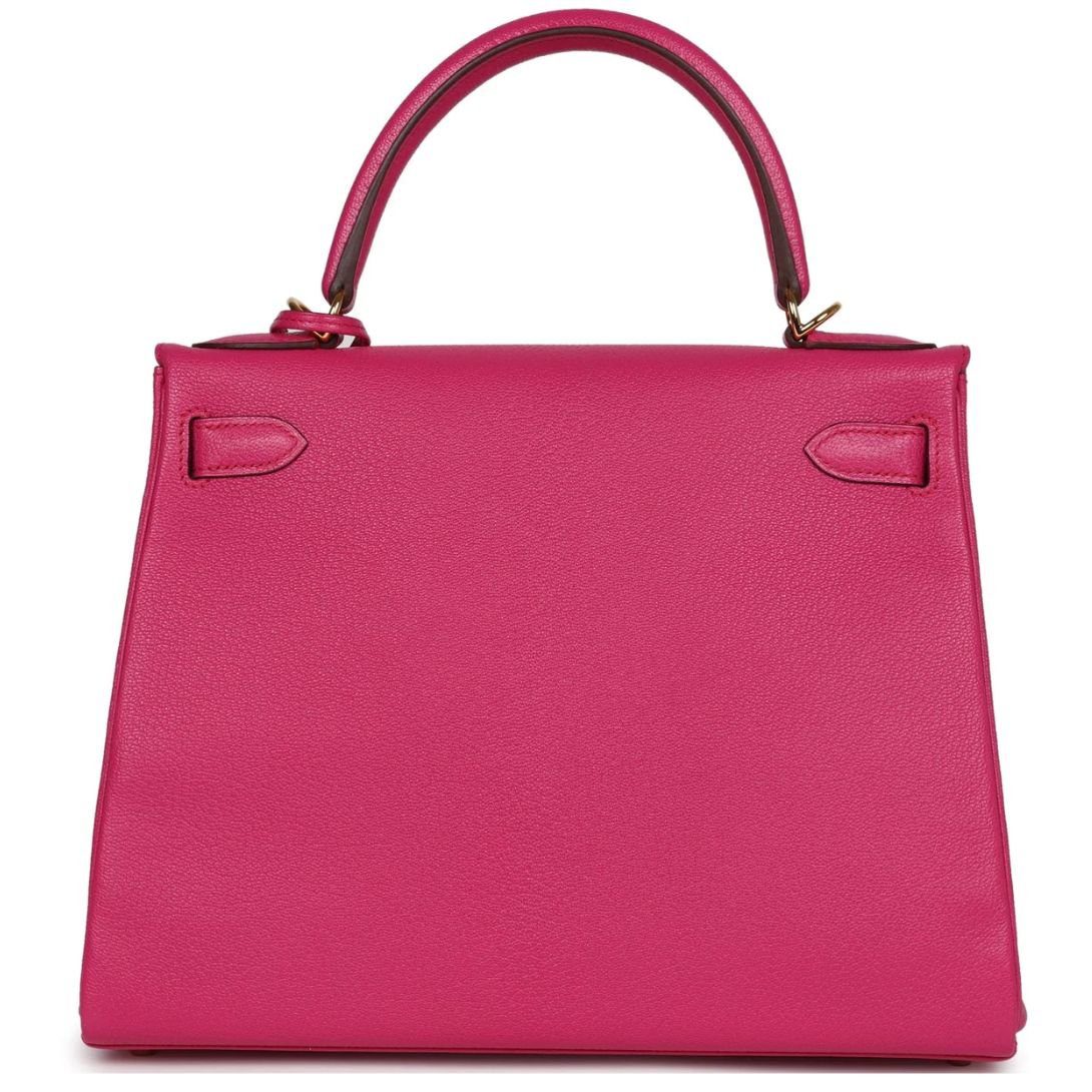 The Kelly Retourne in Rose Extreme chevre mysore combines timeless elegance with a vibrant hue, offering a versatile and luxurious piece for any collection.