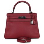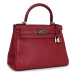 PRE-OWNED HERMÈS KELLY RETOURNE 28 ROUGE GRENAT EVERCOLOR PALLADIUM HARDWARE