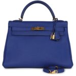 This Bleu Electrique Kelly is a perfect blend of sophistication and functionality, with the beauty of togo leather and the elegance of gold hardware, making it a highly desirable piece.