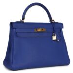 PRE-OWNED HERMÈS KELLY RETOURNE 32 BLEU ELECTRIC TOGO GOLD HARDWARE