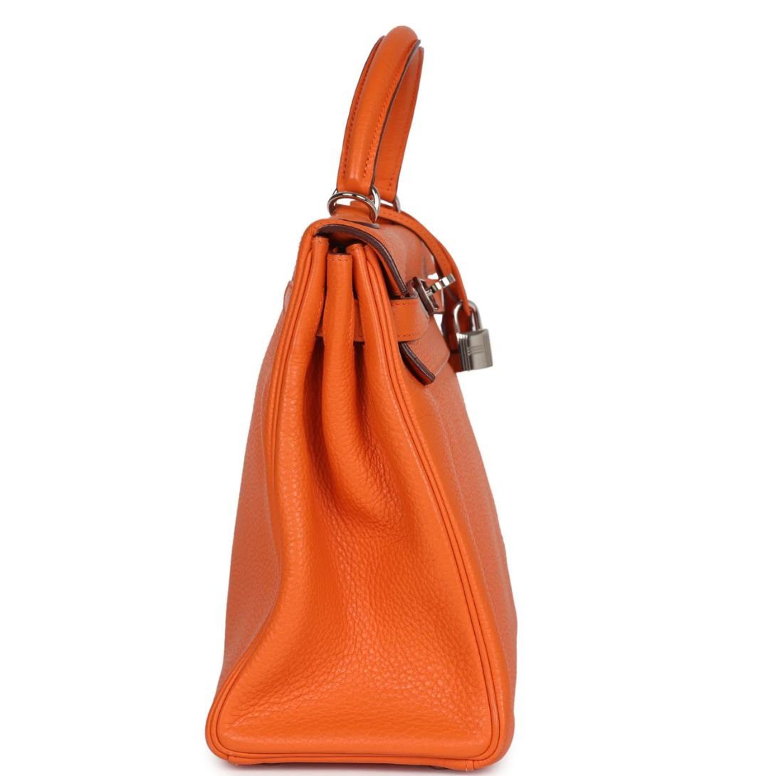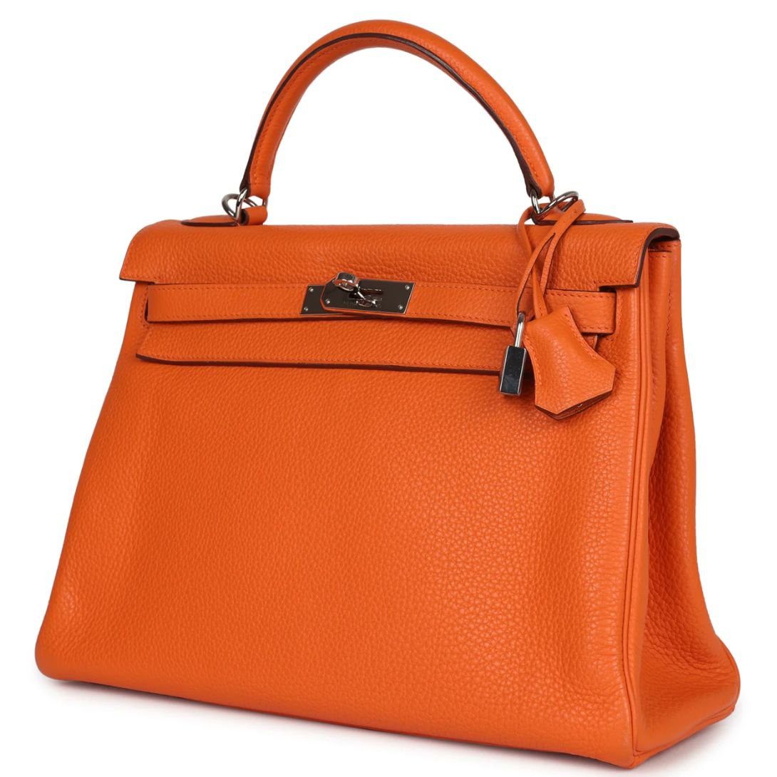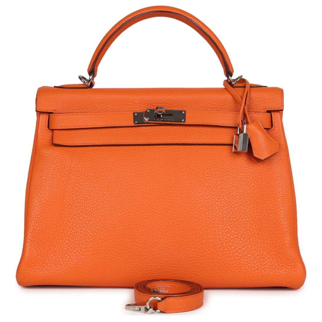 PRE-OWNED HERMÈS KELLY RETOURNE 32 ORANGE TOGO PALLADIUM HARDWARE
