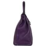 This Kelly, in the Retourne style, is crafted from Ultraviolet clemence leather with palladium hardware and features: