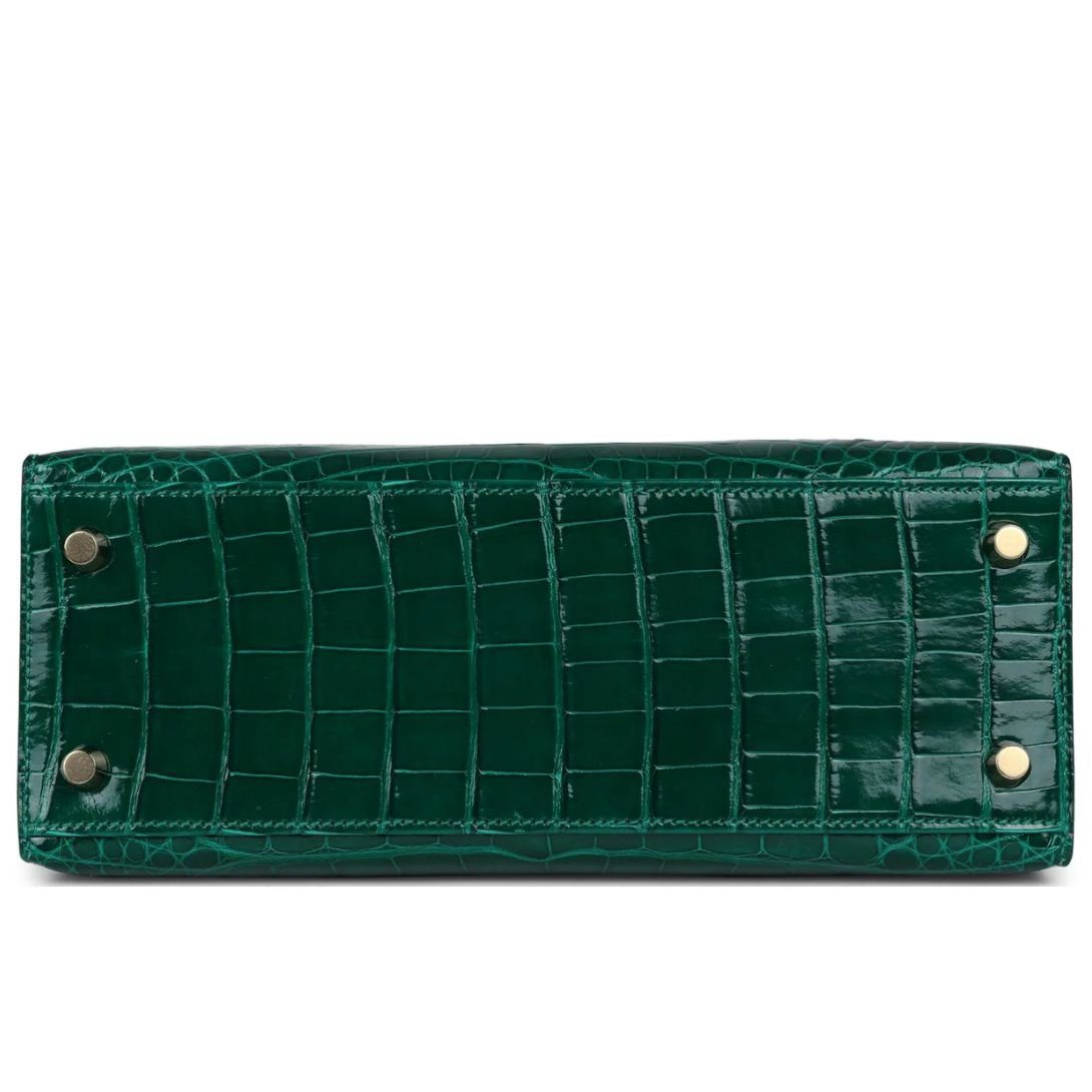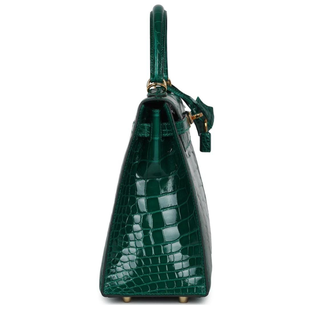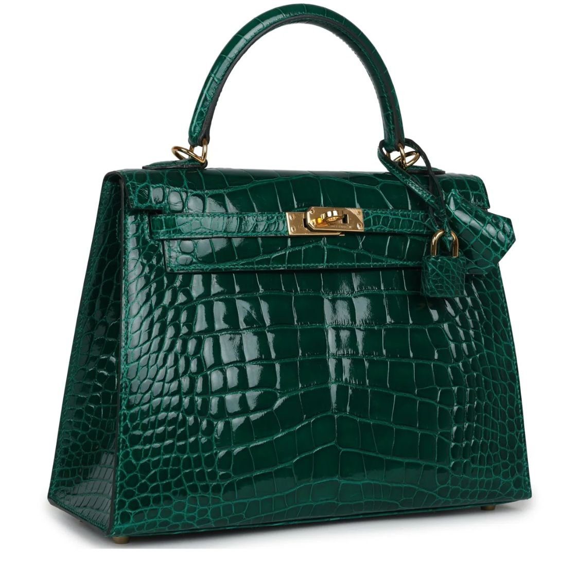 The Hermès Kelly 25 in Emerald shiny alligator is a stunning statement piece, combining impeccable craftsmanship with elegant practicality, making it a cherished addition to any collection.