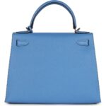 PRE-OWNED HERMÈS KELLY SELLIER 28 BLEU AZUR EPSOM PALLADIUM HARDWARE