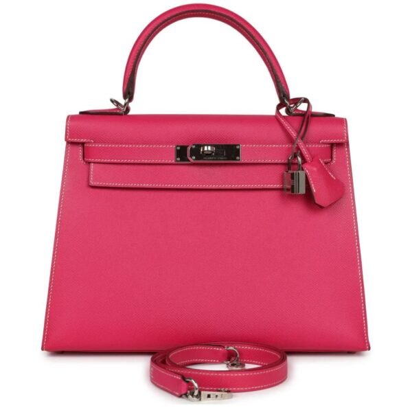 PRE-OWNED HERMÈS KELLY SELLIER 28 ROSE TYRIEN EPSOM PALLADIUM HARDWARE