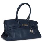 This Special Edition Shoulder Birkin is a unique piece from Jean-Paul Gaultier’s collaboration with Hermès, offering both style and functionality with its distinctive Bleu De Prusse clemence leather and palladium hardware. Despite showing some age-related wear, it retains a classic appeal for collectors and those looking for a luxury statement bag.