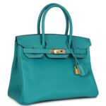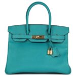 This Special Order Birkin 30 reflects the brand’s dedication to personalization and detail. With its vibrant Bleu Paon hue, pristine condition, and timeless design, it is a standout addition to any luxury collection.