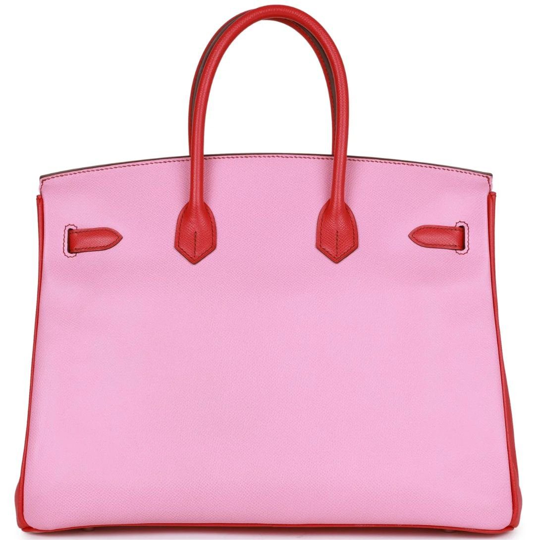 This Special Order Hermès Birkin 35 in Bubblegum and Bougainvillea Epsom leather with palladium hardware is a rare and stylish piece that seamlessly combines playful pink tones with classic sophistication.