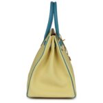 This Special Order Birkin is a rare combination of two beautiful, vibrant colors, Jaune Poussin and Bleu Paradise, and it is a striking example of Hermès’ craftsmanship. The brushed gold hardware adds a touch of elegance, while the practical yet luxurious design ensures this bag is both beautiful and functional. Perfect for those who appreciate exclusivity and timeless style.