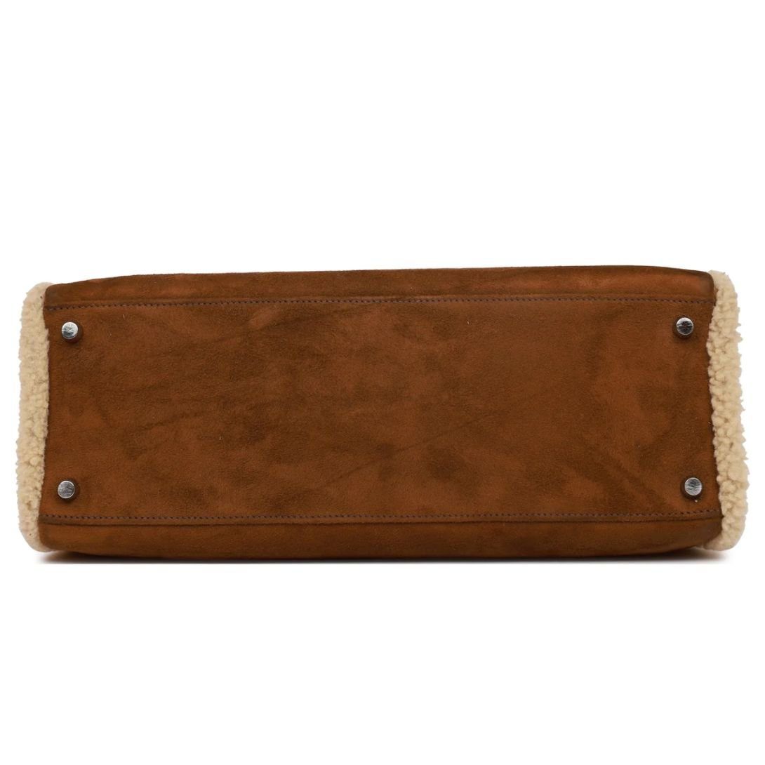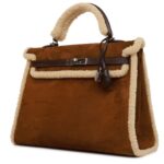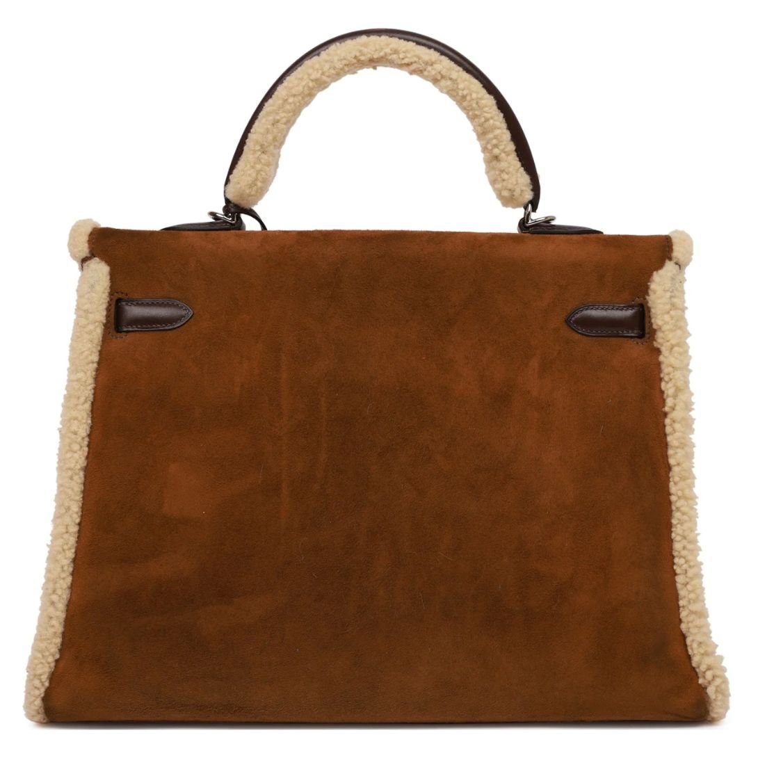PRE-OWNED HERMÈS TEDDY KELLY 35 SHEARLING AND EBENE BARENIA PALLADIUM HARDWARE