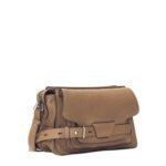 At the forefront of the design is a fold-over flap secured by signature belted straps adorned with a distinguished D-ring buckle. Inspired by the utilitarian aesthetic of workwear satchels, these straps not only enhance the bag’s visual appeal but also ensure the safety of your belongings, adding a touch of rugged charm to its overall elegance.