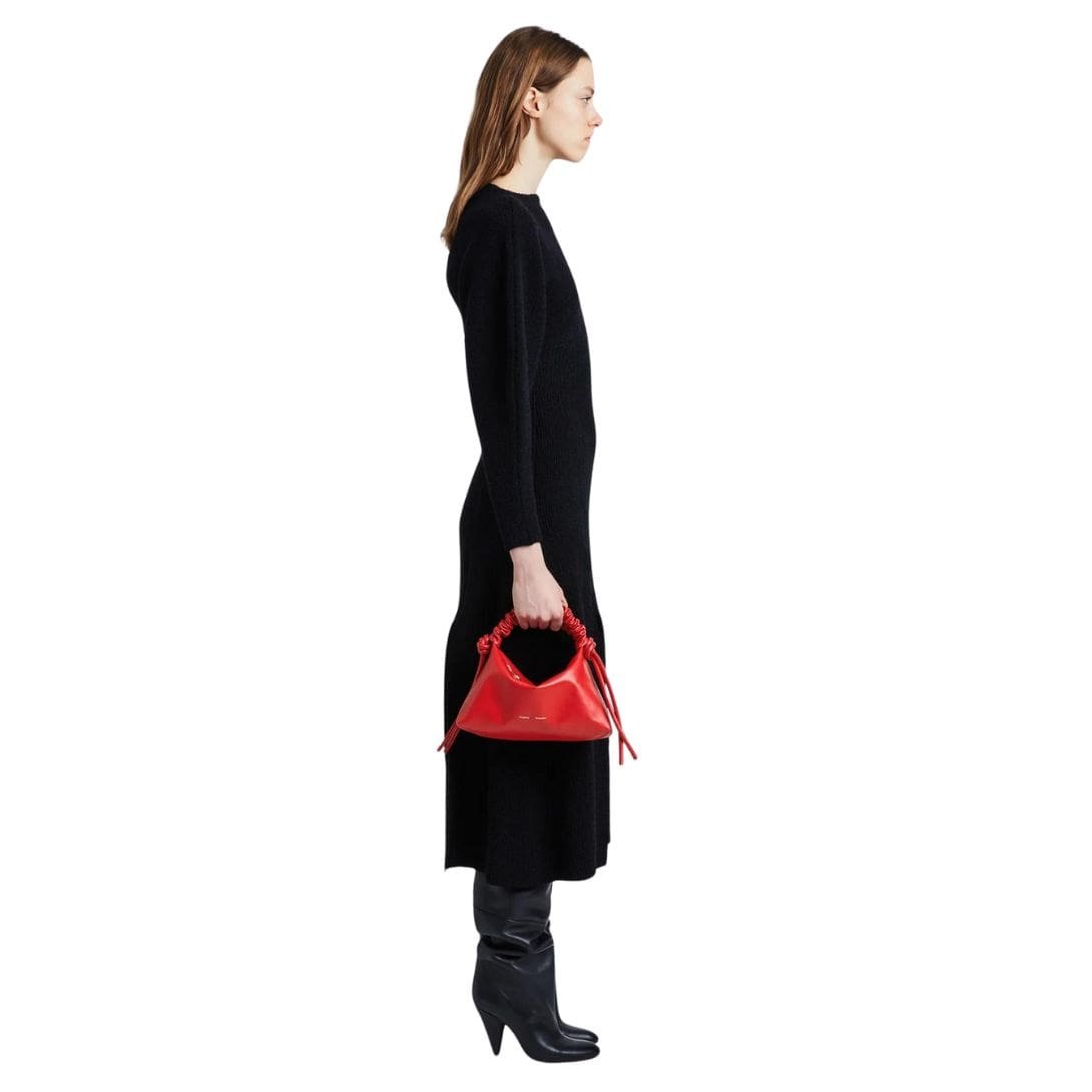 Immerse yourself in the luxurious allure of the Proenza Mini Drawstring Bag Mini Scarlet, meticulously crafted from sumptuous lambskin leather to embody a compact yet irresistibly slouchy silhouette. Drenched in a striking scarlet red hue, this bag exudes confidence and sophistication, making it the perfect statement accessory for any occasion.