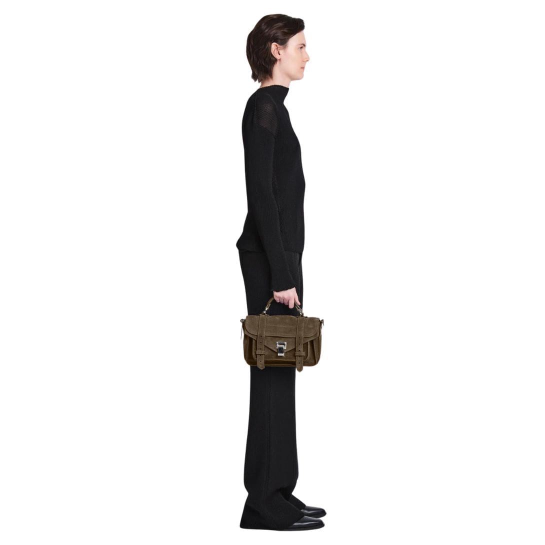 The PS1 Tiny Bag in Suede is a versatile accessory that seamlessly combines timeless elegance with modern practicality. Its thoughtfully curated design and impeccable craftsmanship stand as a testament to the enduring allure of Proenza Schouler’s iconic PS1 family, elevating any ensemble with its understated yet sophisticated charm.