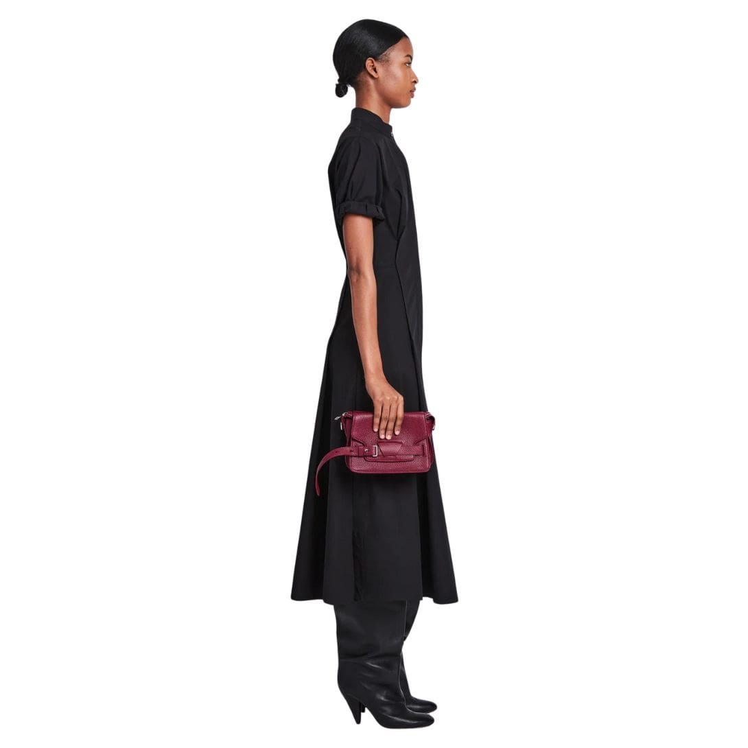 Imbued with a rich, luxurious allure, the Proenza Small Beacon Bag Garnet. emerges as a testament to timeless elegance and impeccable craftsmanship. Crafted from textured leather in a captivating dark red hue, it seamlessly blends traditional influences with modern functionality.