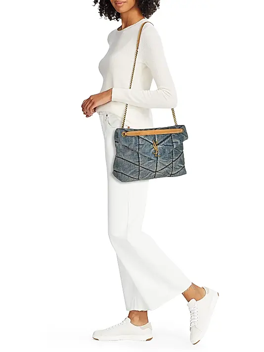 The Puffer Medium Shoulder Bag in Suede and Denim is more than just a fashion statement—it’s a perfect blend of comfort, utility, and high-end design. Ideal for those who value distinctive accessories, this bag balances laid-back denim with the sophistication of suede to create a harmonious, wearable piece. It’s a go-to choice for the stylish and confident woman who appreciates quality materials and iconic style in one versatile handbag. Perfect for elevating everyday looks or adding a chic edge to evening ensembles, this bag effortlessly merges casual charm with luxe appeal.