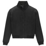 This zip-up blouson brings a contemporary twist to classic outerwear. Featuring a stand collar and Saint Laurent embroidery on the chest, it combines style with functionality. The diagonal shoulder bands add a distinctive design element, while the ribbed cuffs and hem enhance the jacket’s structure, giving it a sharp, tailored look.