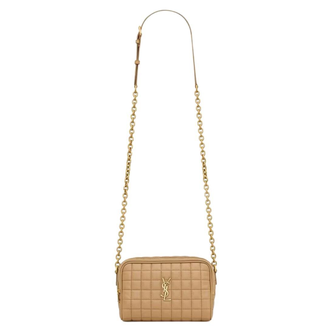 This Camera Bag is a stylish accessory, featuring the iconic Cassandre and intricate carré-quilted topstitching. Designed with an adjustable crossbody strap for convenience, this bag is perfect for everyday use.