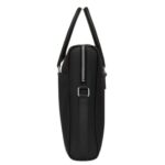 The briefcase measures 37 x 28 x 8 cm (14.5 x 11 x 3.1 inches), offering ample space for essentials. Antique nickel hardware accents its sleek, modern design.