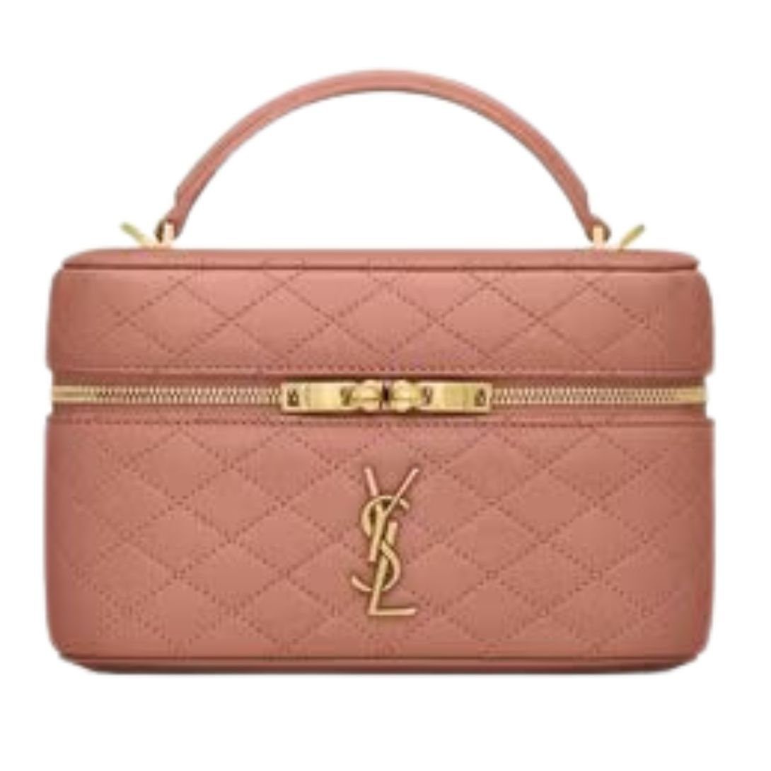 This sophisticated vanity bag showcases a timeless design with diamond-quilted overstitching and the iconic CASSANDRE emblem. With its versatile strap options and luxurious materials, it is a perfect blend of elegance and practicality.