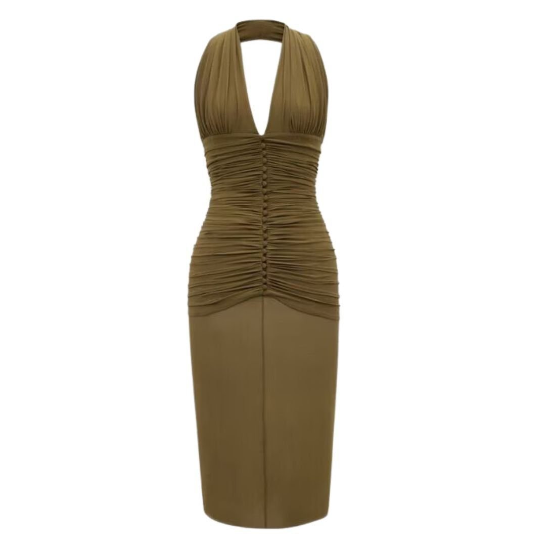 SAINT LAURENT HALTER DRESS IN SILK CREPE