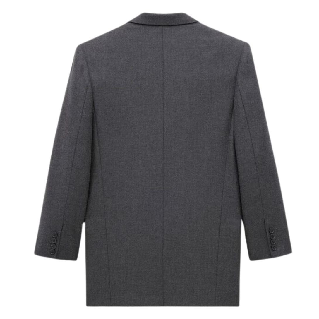 • Peaked Lapels and Oversized Fit: The peaked lapel complements the oversized cut for a modern twist on classic tailoring.