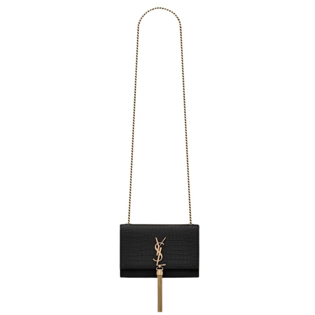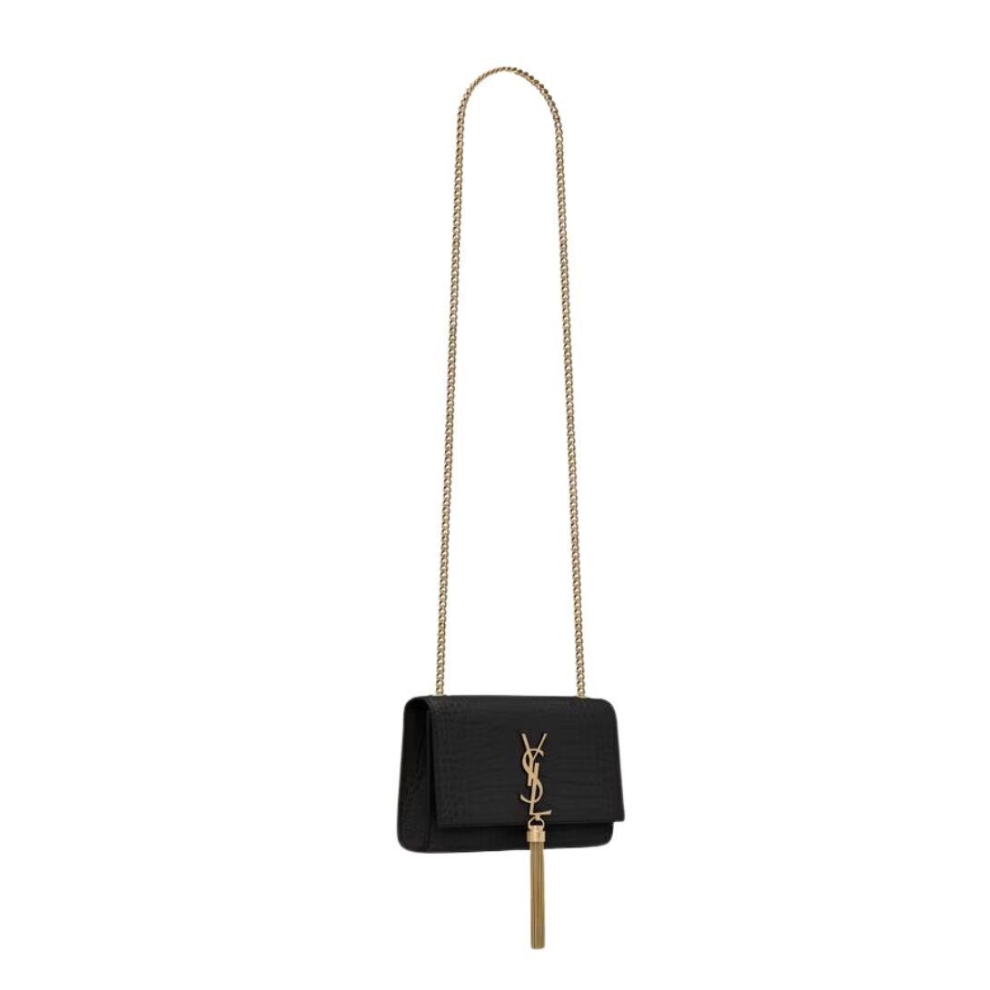 SAINT LAURENT KATE SMALL TASSEL IN CROCODILE-EMBOSSED LEATHER