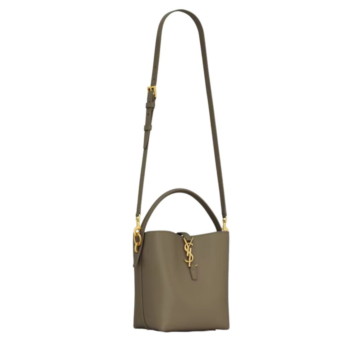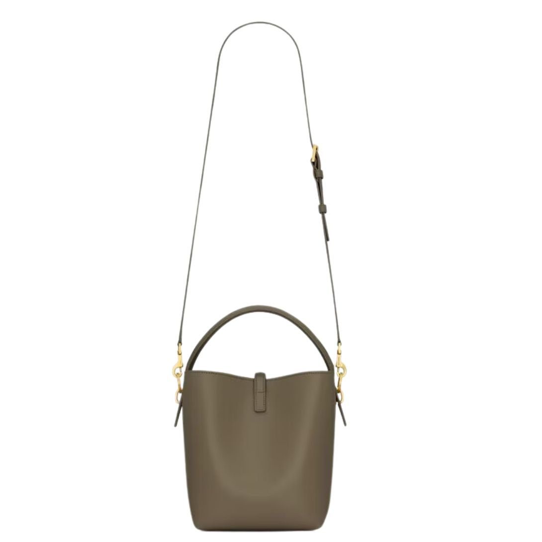 This bucket bag is designed with a Cassandre hook closure, offering both style and security. The top handle and adjustable, detachable shoulder strap allow for easy customization of how you carry it. Ideal for both day-to-day use and more formal occasions, this bag combines utility with elegance.