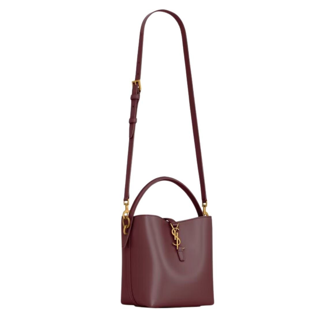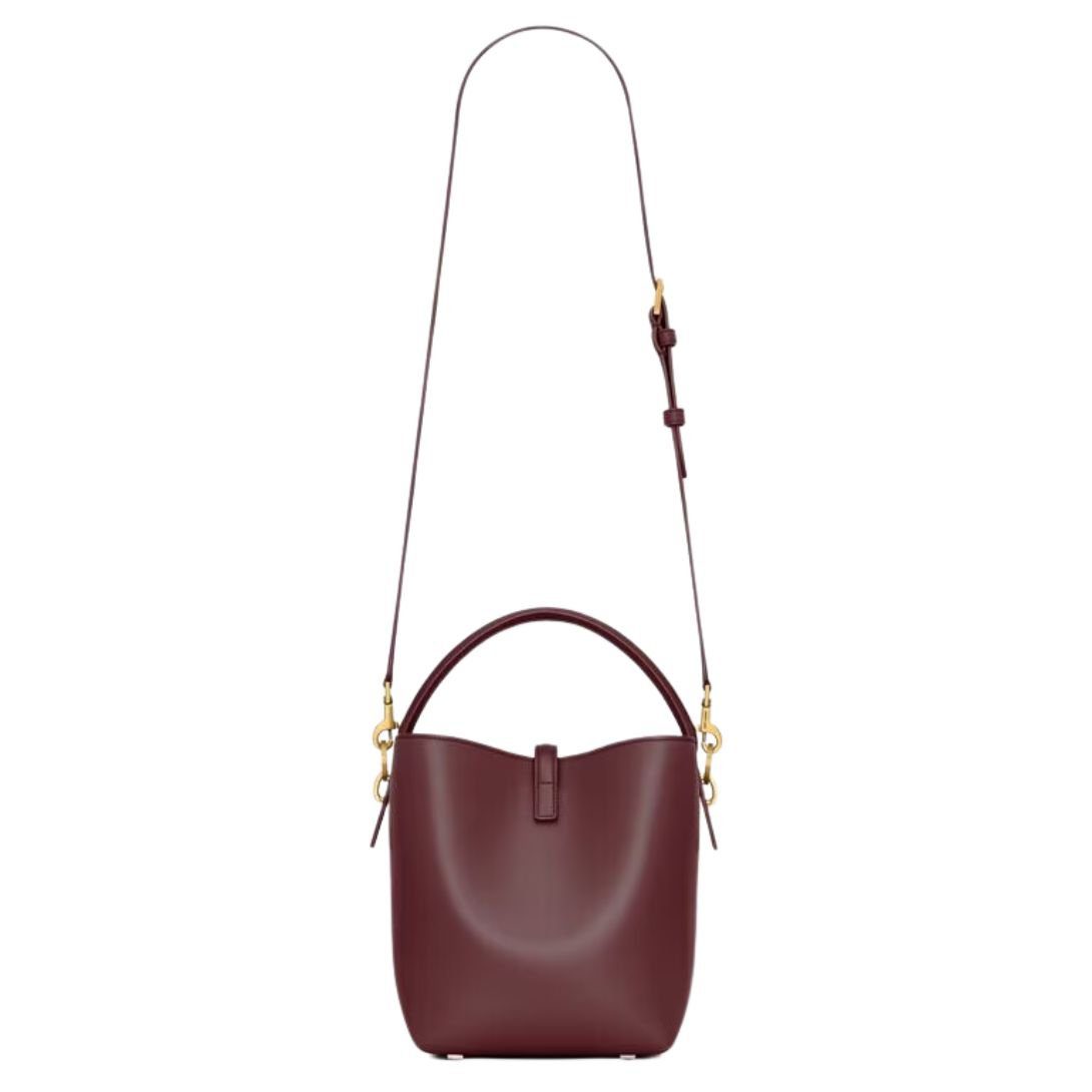 This sophisticated bucket bag features the signature Cassandre hook closure, top handle, and an adjustable, detachable shoulder strap. Crafted from luxurious calfskin leather, it combines both style and functionality for a versatile addition to your collection.