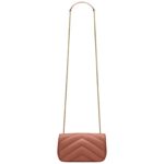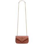 The mini version of the LOULOU chain bag is crafted from lambskin leather, featuring the signature chevron-quilted topstitching, a hallmark of the collection. This lightweight bag includes a removable leather pouch and a versatile leather and chain strap, making it perfect for crossbody wear.
