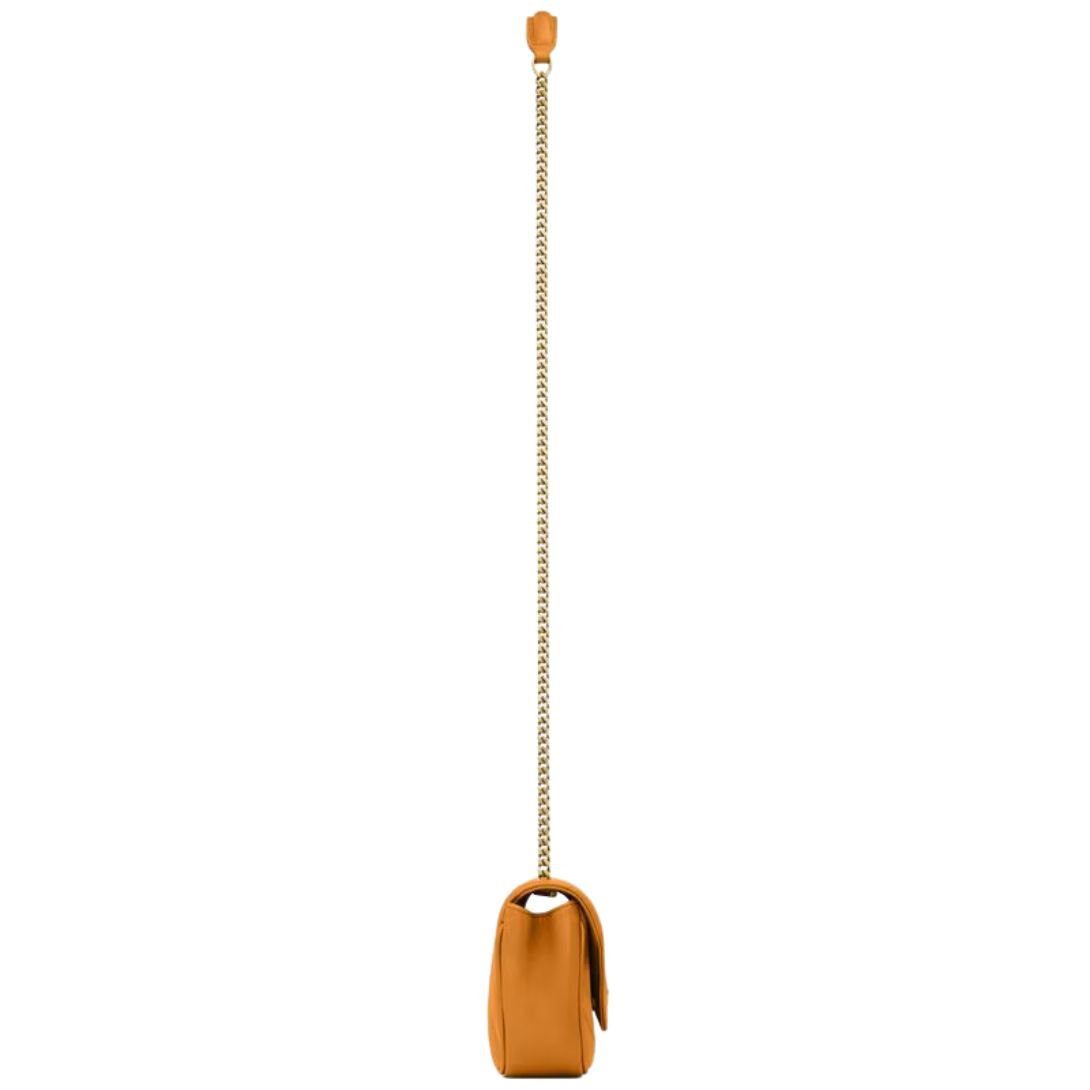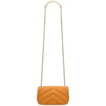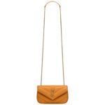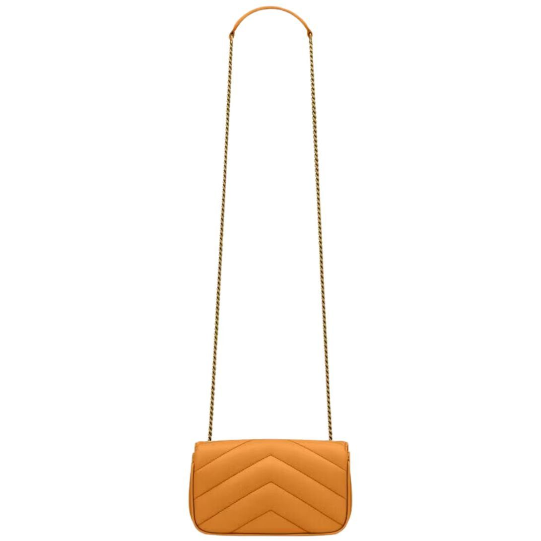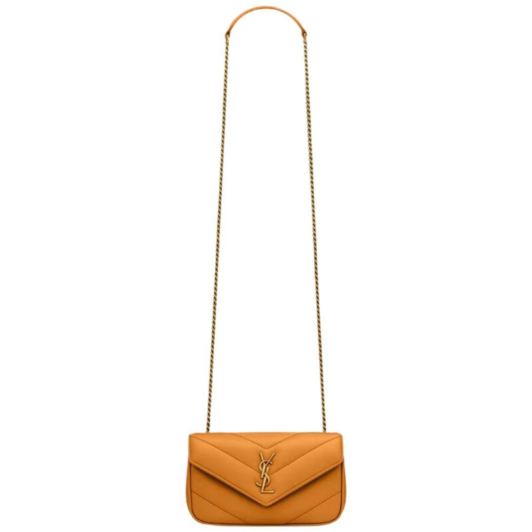 This mini version of the LOULOU chain bag is crafted from luxurious lambskin leather, featuring the signature chevron-quilted topstitching that defines the brand’s style. It’s a lightweight design perfect for crossbody carry, with a removable leather pouch for added convenience.