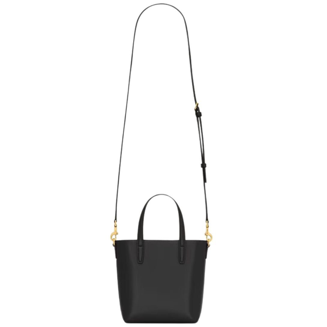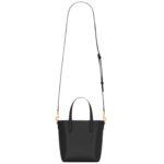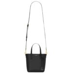 This mini tote bag is embossed with “SAINT LAURENT PARIS” and features a removable leather-encased Cassandre charm for a touch of sophistication. The design is complemented by flat leather top handles for easy carrying.