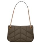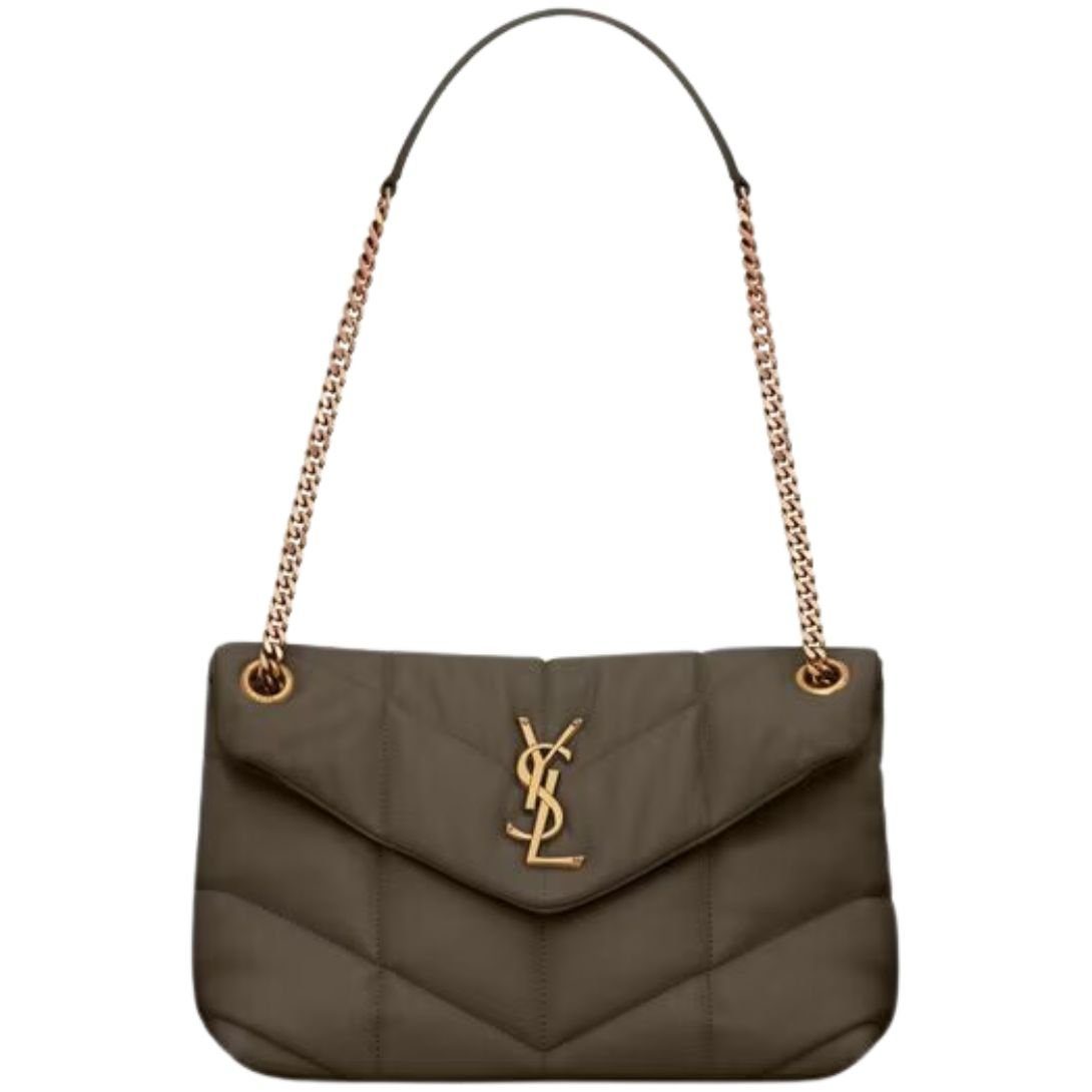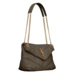The Iconic Loulou in the puffer version with chevron quilt over stitching is a stylish and functional bag, combining luxury with practicality. It features a sliding chain strap that can be worn both on the shoulder and crossbody for added versatility.