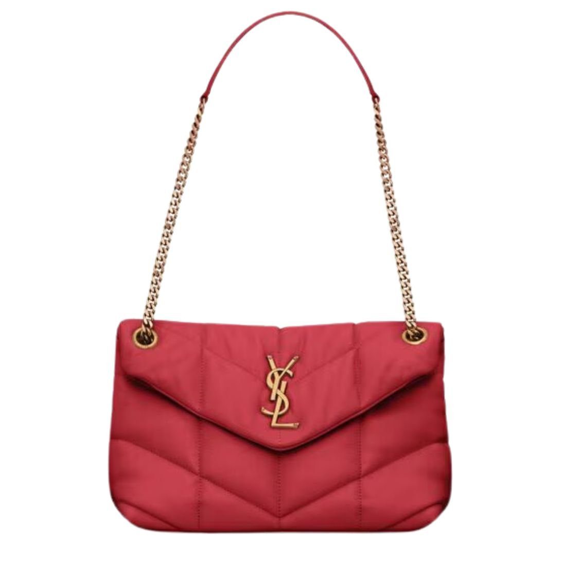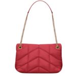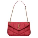 The Iconic Loulou in puffer version with chevron quilt over stitching is a luxurious and versatile bag. It features a sliding chain strap, allowing it to be worn on the shoulder or crossbody for flexible styling.