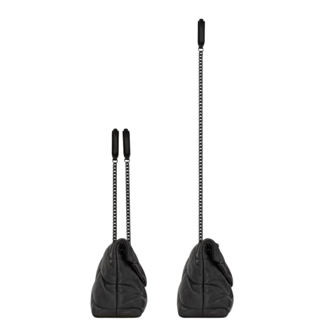 The Iconic Loulou Puffer showcases chevron quilt overstitching, a signature detail that gives the bag its distinct texture and luxurious appearance. Featuring a sliding chain strap, it can be worn on the shoulder or across the body for versatile styling.