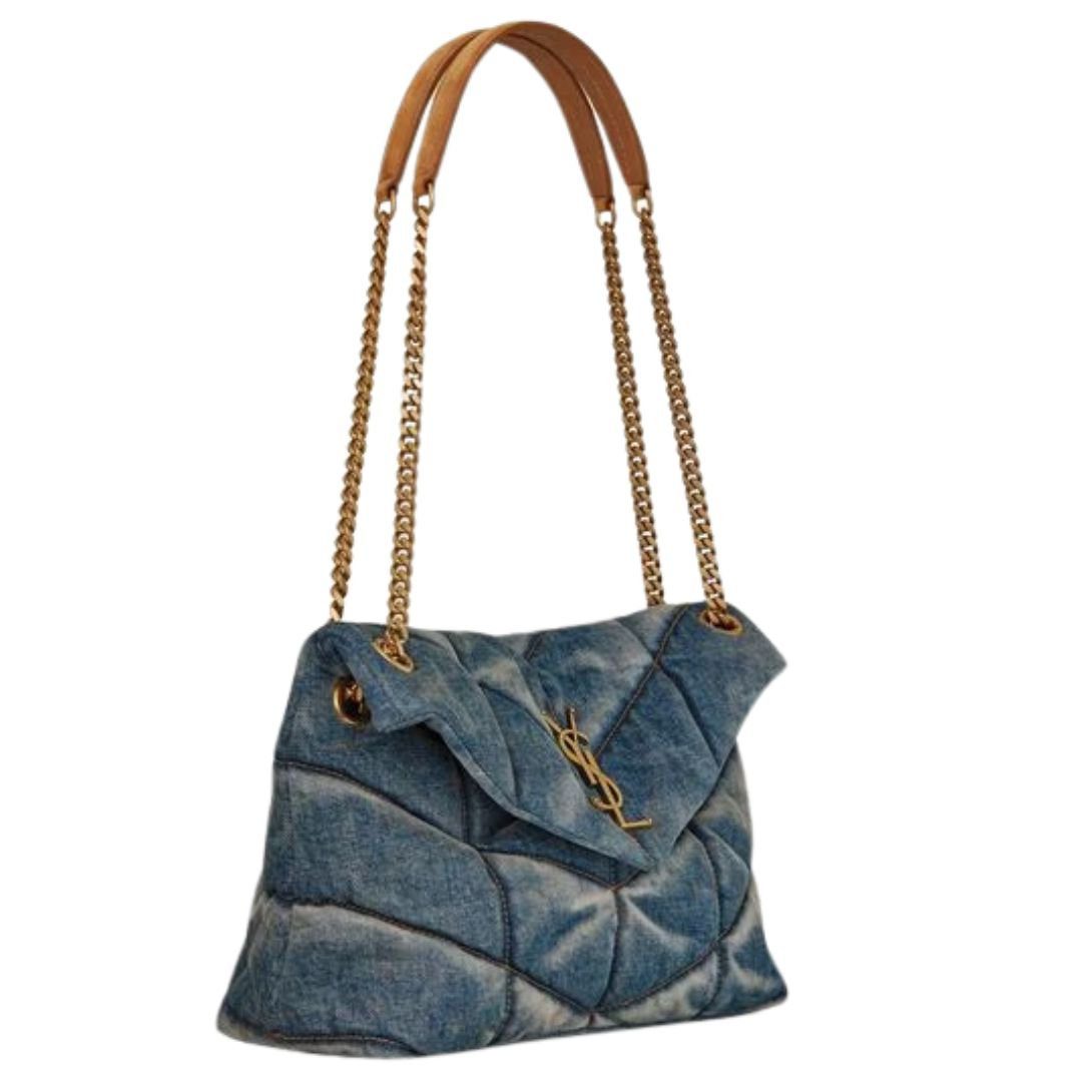 Home BAGS SAINT LAURENT BAGS SAINT LAURENT PUFFER SMALL IN SUEDE AND DENIM