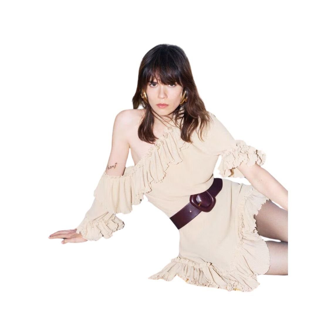 SAINT LAURENT RUFFLED DRESS IN SILK CREPON MUSLIN