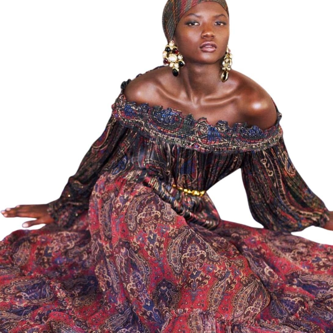 SAINT LAURENT RUFFLED SKIRT IN PAISLEY SILK CREPON