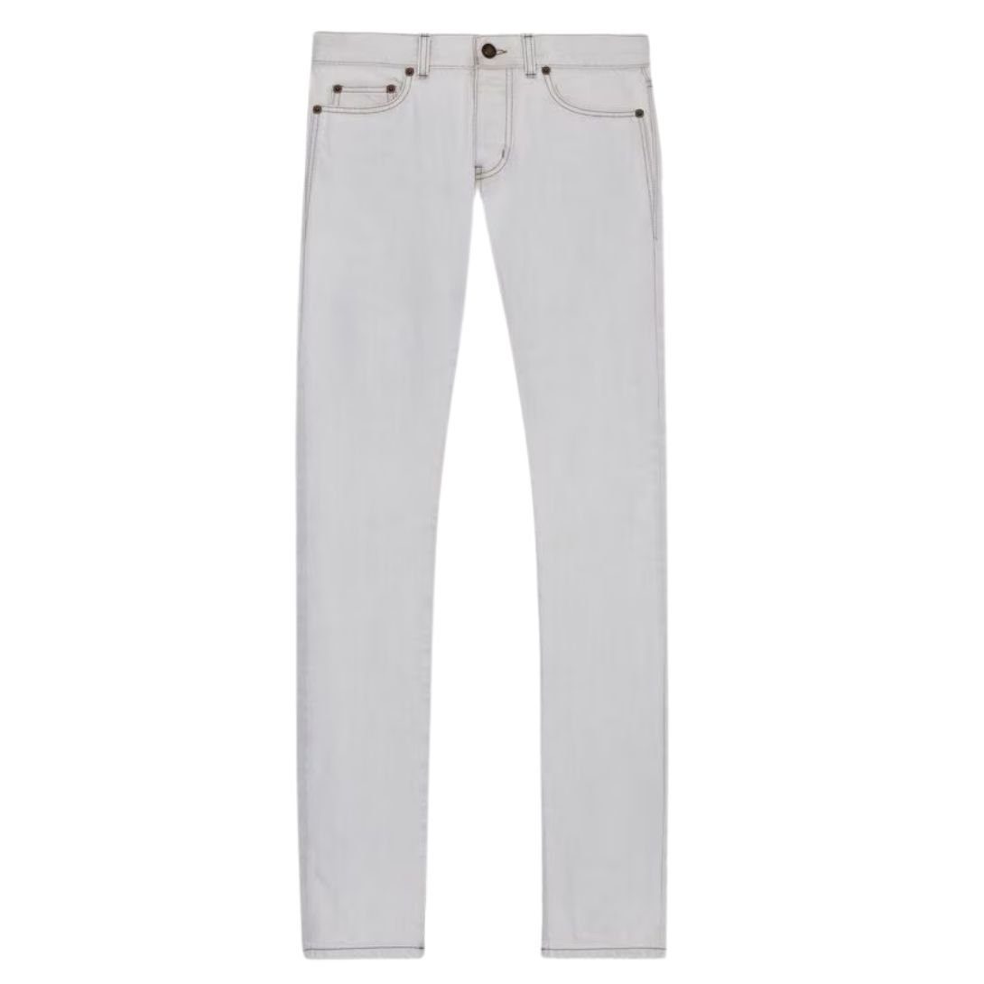 SAINT LAURENT SLIM FIT JEANS IN GREY OFF WHITE DENIM