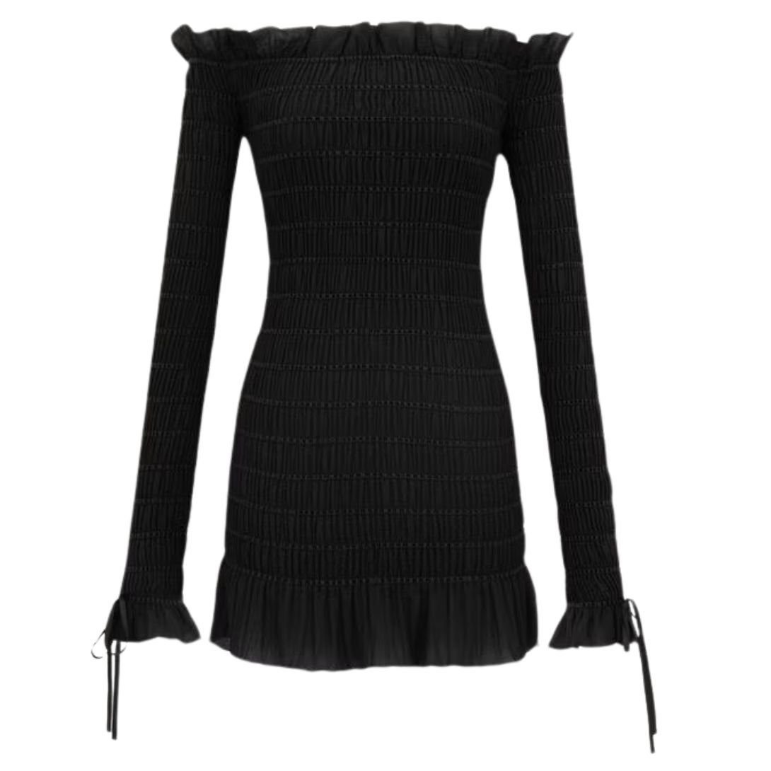 SAINT LAURENT SMOCKED DRESS IN SILK GEORGETTE
