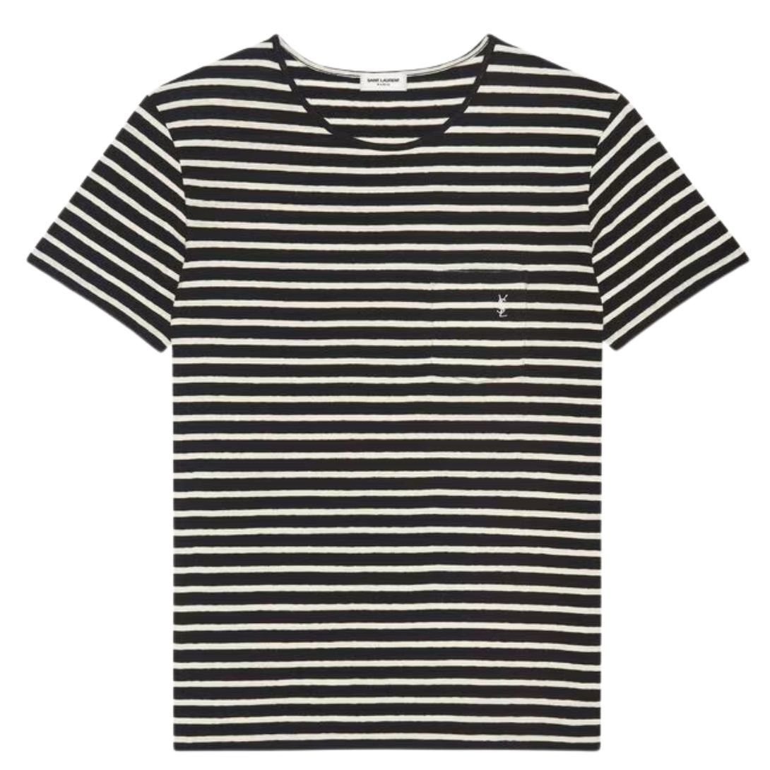 SAINT LAURENT STRIPED CASSANDRE T-SHIRT IN JERSEY